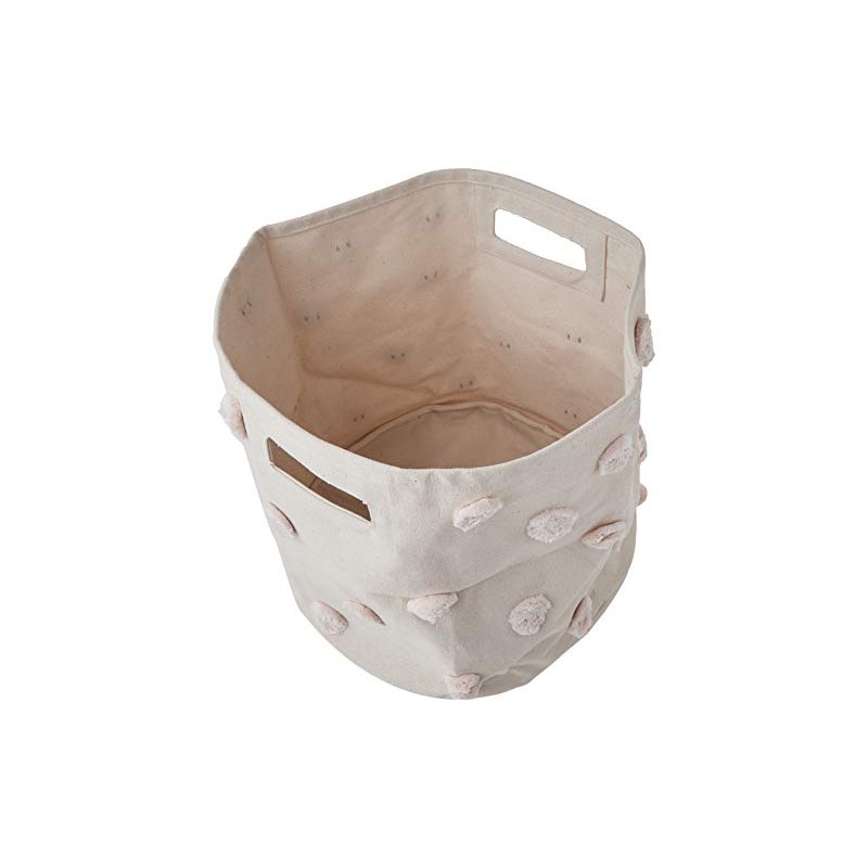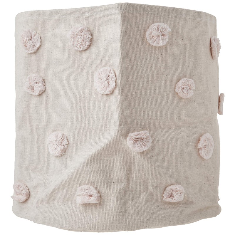 Tidy away books, trains and craft supplies. Great for your little one's treasures or as a catch all for the family. With each Pom Pom sewn by hand, our Petit Pehr Pom Pom bins are 100% sturdy cotton canvas and come in Blush, Mint, Grey and Multi color. 13"d x 12"h. Care Instruction: Spot clean as needed, do not machine-wash. For your little one’s safety, decorative use only. This is not a toy. Small parts.