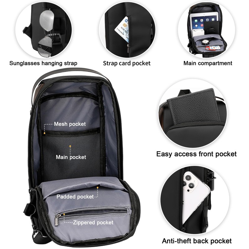 - Material: The bags for men are made of high density nylon fabric and PU leather. Water-resistant and waterproof, easy to clean, daily maintenance only requires wiping the leather sling bag with cotton cloth. Weak light source reflective strip design on the front and the shoulder strap of the man purse for men crossbody