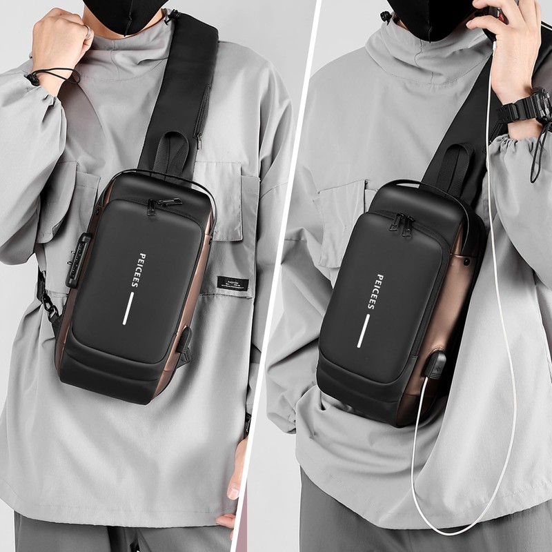 - Privacy Safety Combination Lock: This cross body bag set a USB charging and anti-theft password lock, convenient and practical. (Notice: The USB charge means a hole design for connecting your power bank to smart devices. The mens shoulder bag does't charge itself. Excluding power bank and usb cable. The initial password of the anti-theft combination lock is 000. It can only lock the main compartment.)