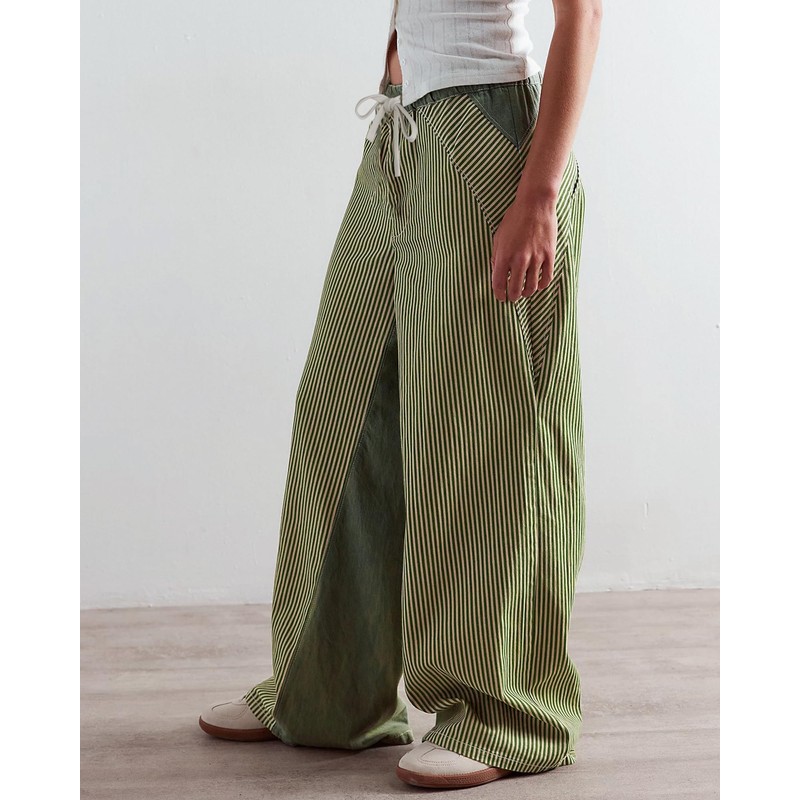 PEIHOT Low Rise Striped Denim Pants for Women Pull On Drawstring Boho Baggy Jeans Trendy 2025 Green