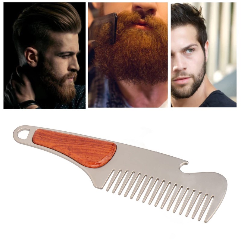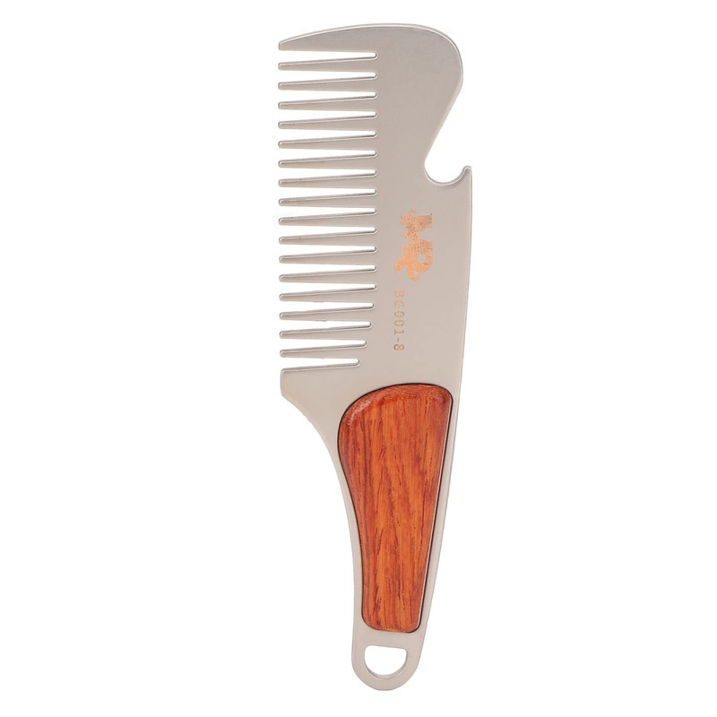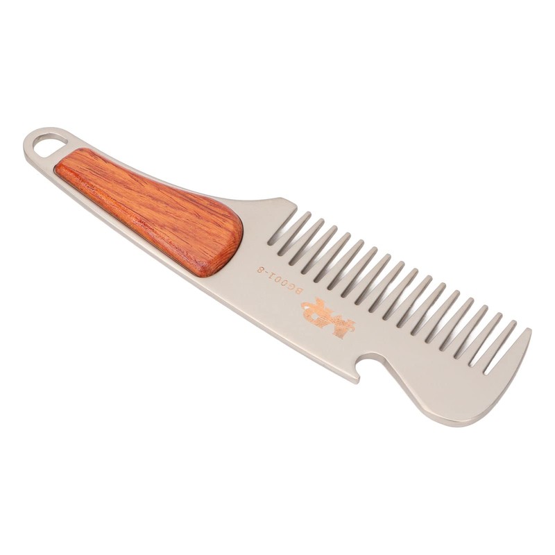 Peine Multiusos para Barba para Hombres, Peine para Bigote con Bolsillo de Sándalo con Dientes de Acero Inoxidable para Peluquería