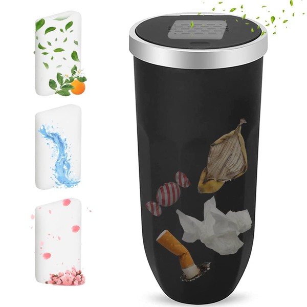 PEIONO Mini Bote Basura para Coche, Bote de Basura para Auto con Tapa a Presión, Viene con Tres Pastillas de Aromaterapia, Mantén tu Coche Ordenado, Ideal para Coche, Hogar y Oficina, Negro