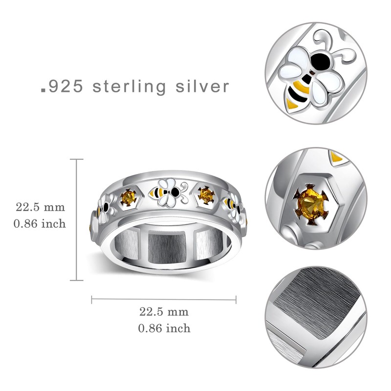 - 【Material】: Crafted from genuine 925 sterling silver and accented with cubic zirconia, this bumble bee ring is lead-free, nickel-free, and hypoallergenic. Safe for sensitive skin, it’s designed for long-lasting wear and everyday elegance.