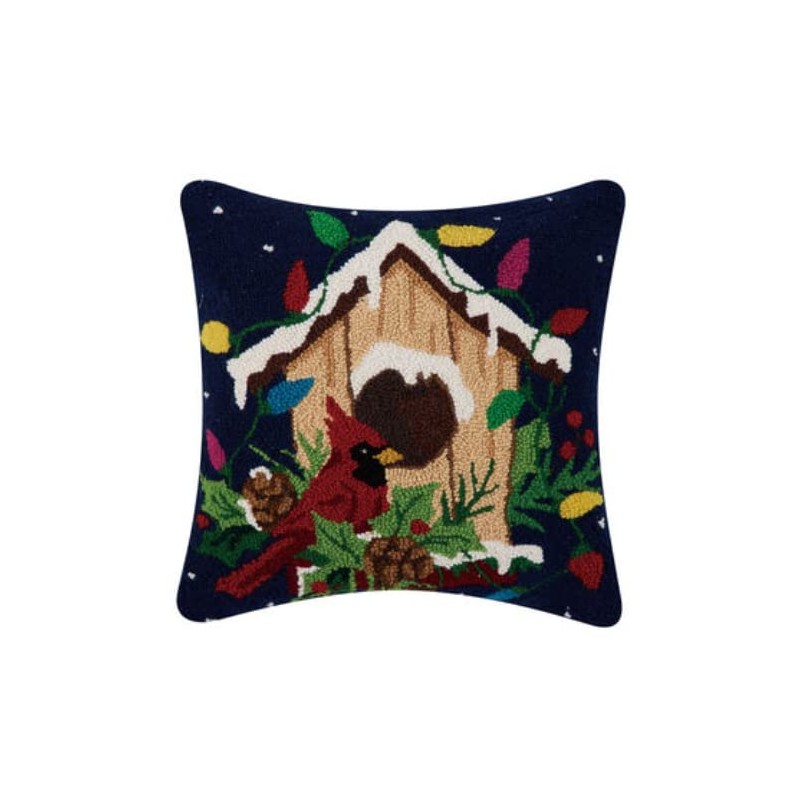Peking Handicraft - Christmas Birdhouse 18" Square Hook Pillow - 31SJM10530C18SQ