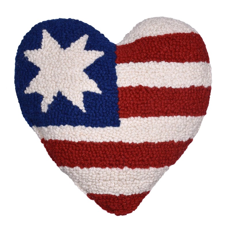 This small heart-shaped throw pillow will add a lovely touch of patriotism to your decor. The 9 x 9-inch pillow features a 100% wool face with an ivory polyester velvet back and polyfill insert.