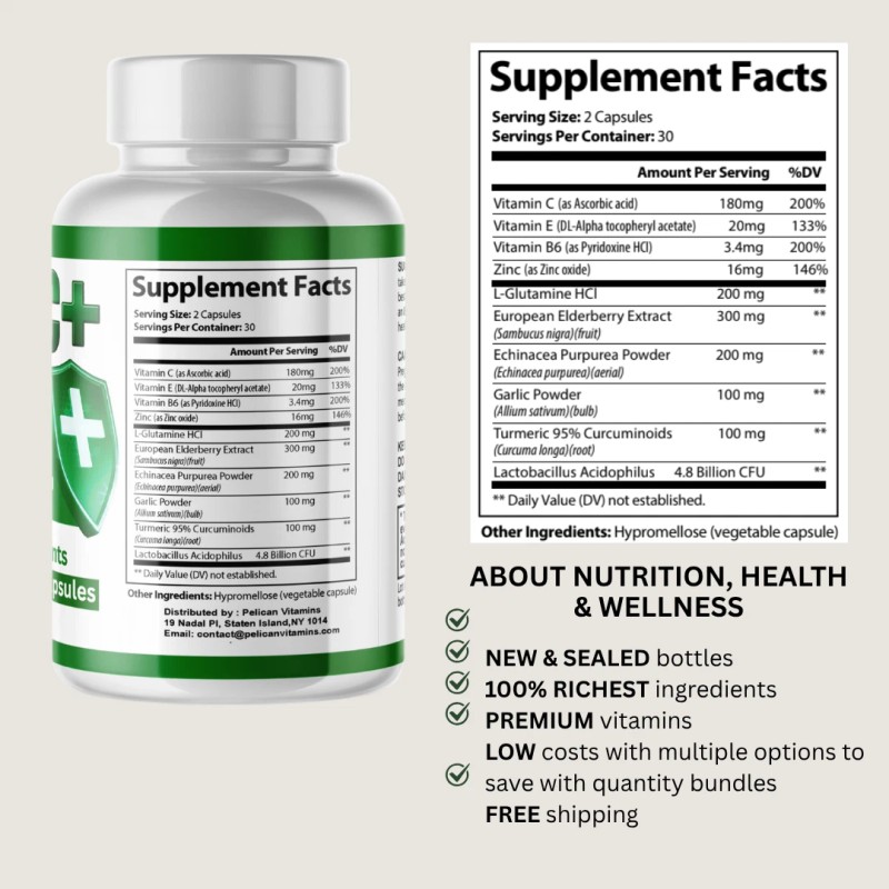- Active Ingredients: Lactobacillus acidophilus, Vitamin B6, Vitamin C (Ascorbic Acid), Vitamin E, Zinc, European Elderberry Extract, Garlic Powder