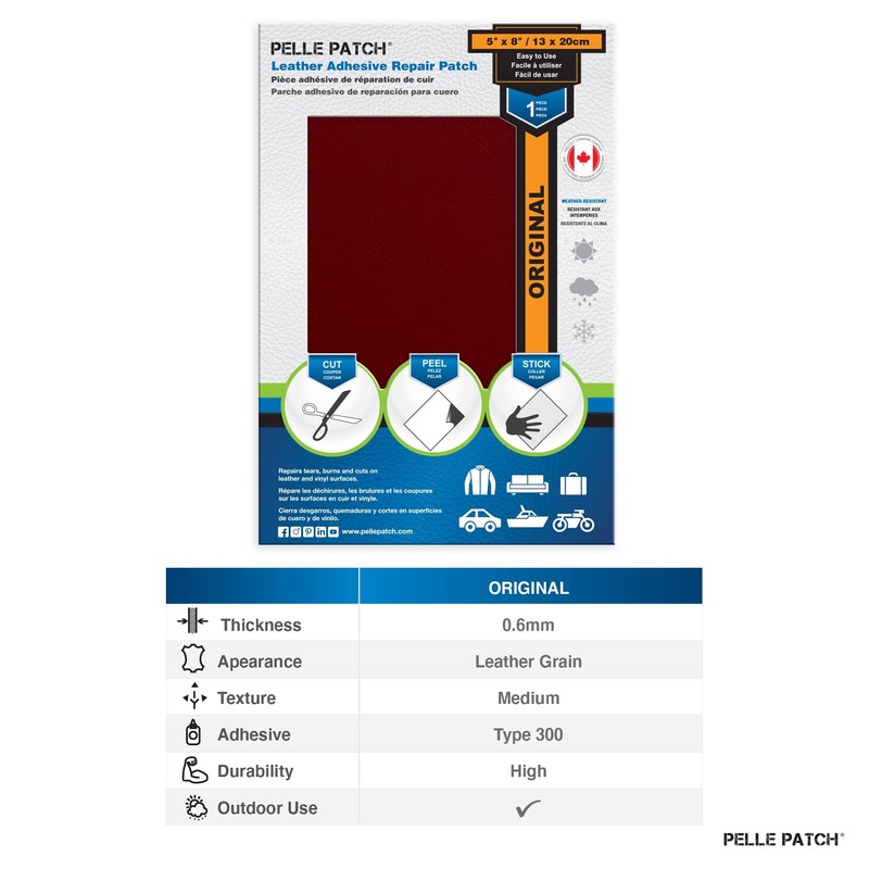 - Quickly and easily repair damaged leather or vinyl items with Pelle Patch. Just cut, peel and stick. Restore your damaged leather to its former glory in minutes!