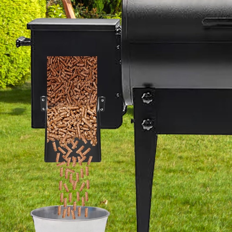 【KEEP CLEAN】The pellet auxiliary chute allows you to guide the pellets into the pellet storage container neatly and orderly, and you no longer have to worry about the wood pellets falling outside, saving you time and allowing you to enjoy your barbecue time more easily.