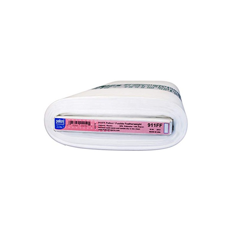 - Pellon Fusible Featherweight Interfacing 20'' x 10 yd Bolt. 911FF Fusible Featherweight Interfacing is a great choice for your next apparel making project. This fusible nonwoven interfacing is made of polyester and rayon. Suitable for light to midweight fabrics it can be used with wovens and knits such as challis chambray jersey broadcloth and linen.