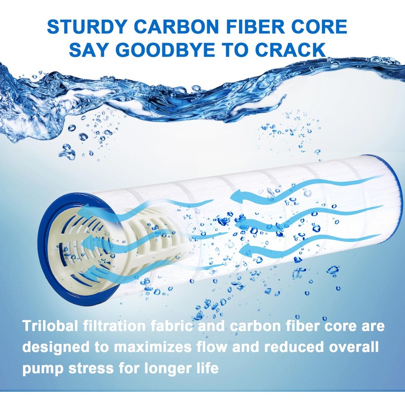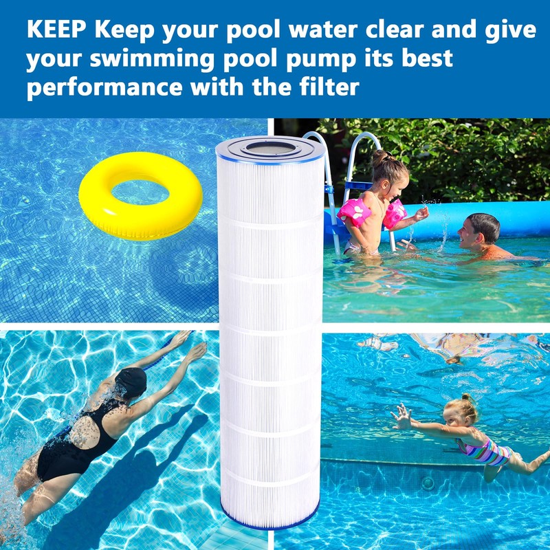 - 【Advanced Filtration System】Innovated "Dirt-Locking" technology make the fabric traps much more than normal fabric,and excellent chlorine Resistance. Pool filter cartridge efficiently removes hair, leaves, dust, sediment, sand, etc.keeps your pool clean at all times.