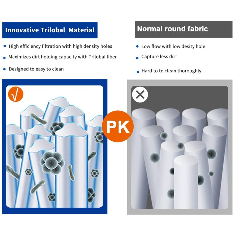 - 【Easy to Clean】The Improved Trilobal Fabric Filter Structure enables the deep penetration of impurities into filter pleats when we wash it, easier to capture and release dirt, It is recommended to wash the filters every 2 weeks in order to maximize the performance and capacity.