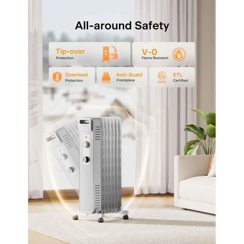 - 360° All-Around Heating: Our oil radiator heater boasts 7 advanced fins and high-conductivity thermal oil, improving heat efficiency by 32%. Experience faster, more even warmth throughout your space.