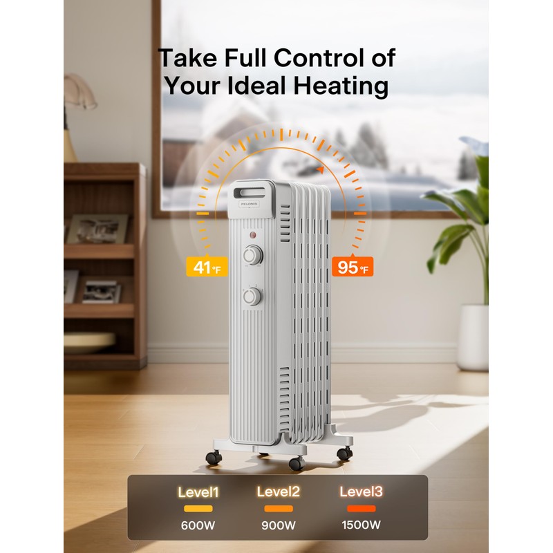 - Energy Efficient: Choose from 600W/900W/1500W modes for tailored power use. Pelonis oil filled heater optimizes real-time energy consumption, saving on winter bills.