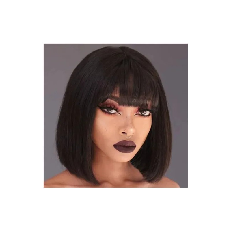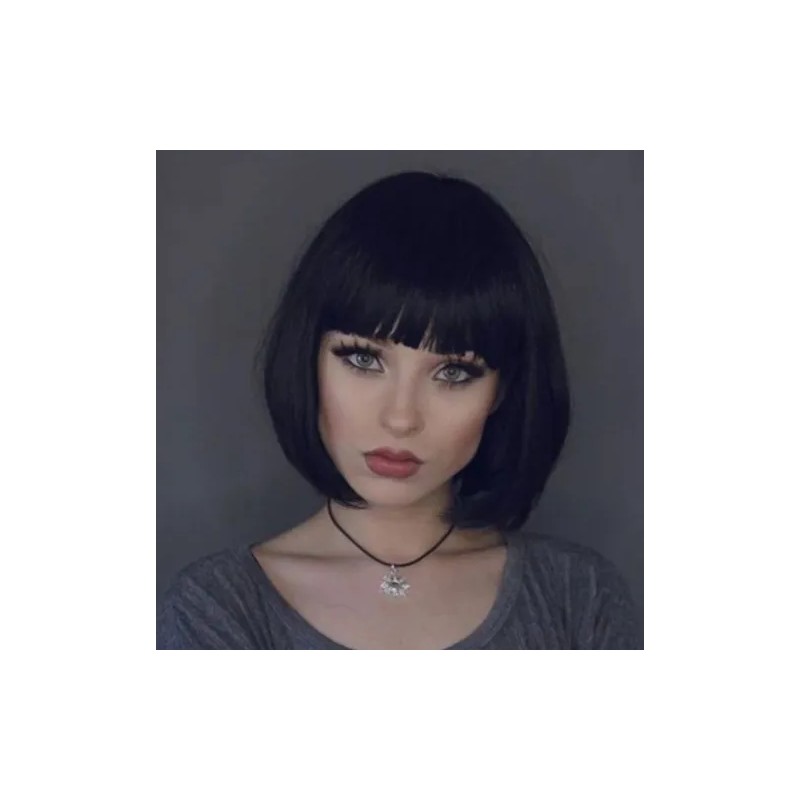 Peluca Bob Recta Lisa Con Flequillo Estilo Clasico Chic Negro M