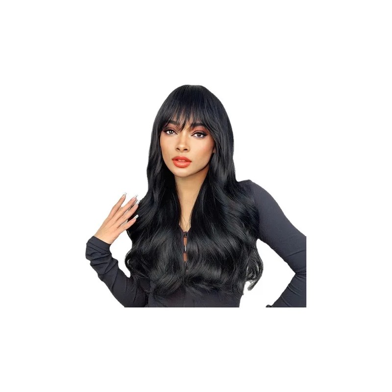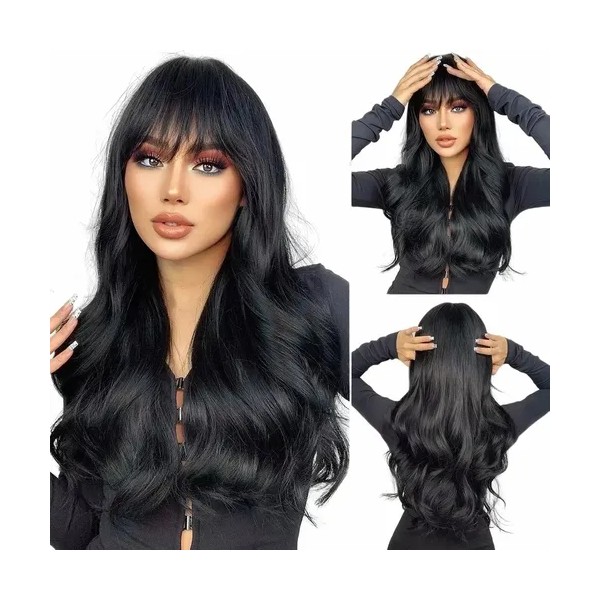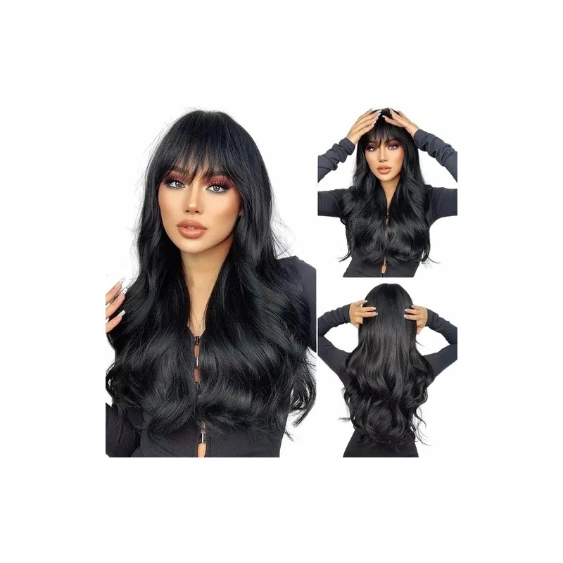 Peluca Larga Ondulada Natural Cabello Negro De Mujer Rizado