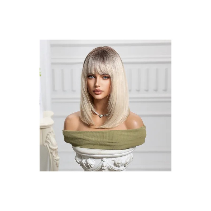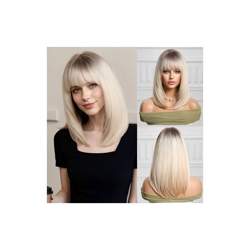 Peluca Rubia Clara Lacio Fleco Corta Natural Bob Para Mujer