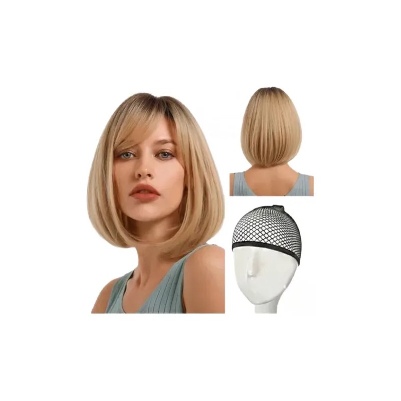 La peluca rubia corta a la altura de los hombros es perfecta para quienes buscan un cambio de look sin necesidad de ir a la peluquería.