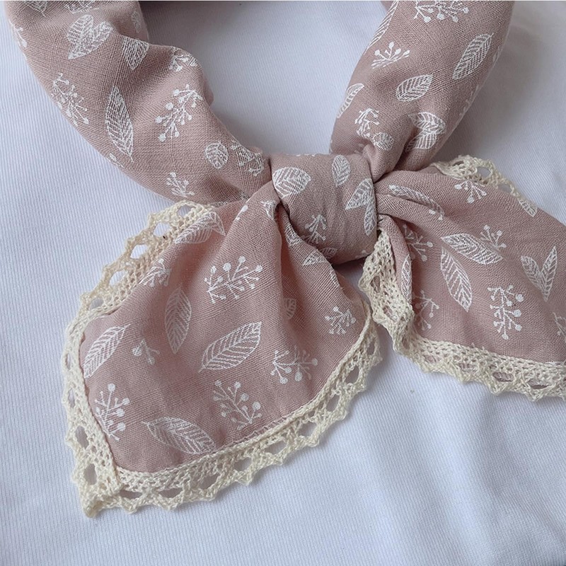 Pemilosci Soft Cotton Like Lace Bandana Headband, Head Wrap, Protective Coverage, Hair Neck Scarf for Girl for Women 24 x 24 inch (CAS026 - Little Leaf P)
