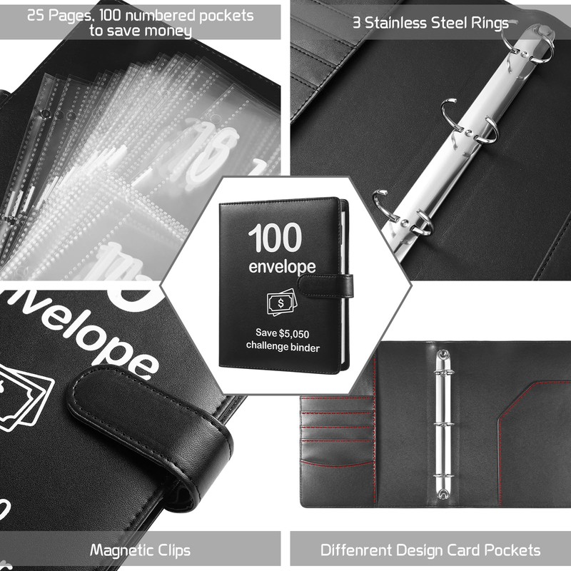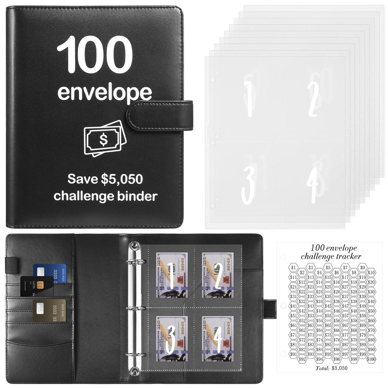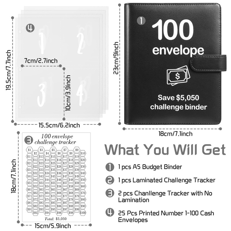 • What You Get: 1pc PU leather A5 size binder, 25pcs 3-hole cash envelopes pre-printed number with 1-100, 1 reusable laminated sheet tracker of $1 to $100. Use our money saving binder to manage your finances effectively.