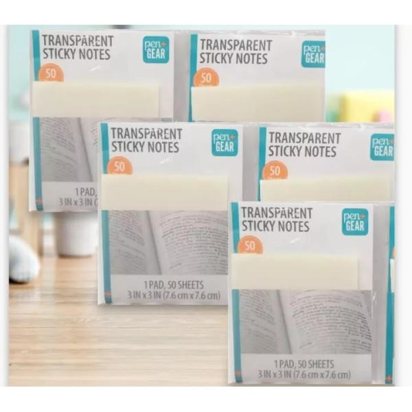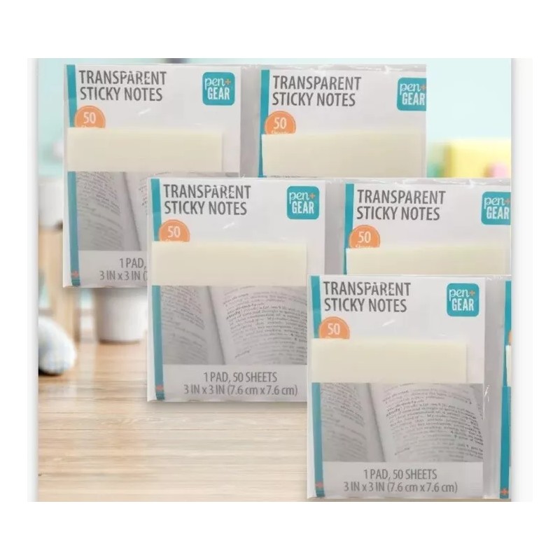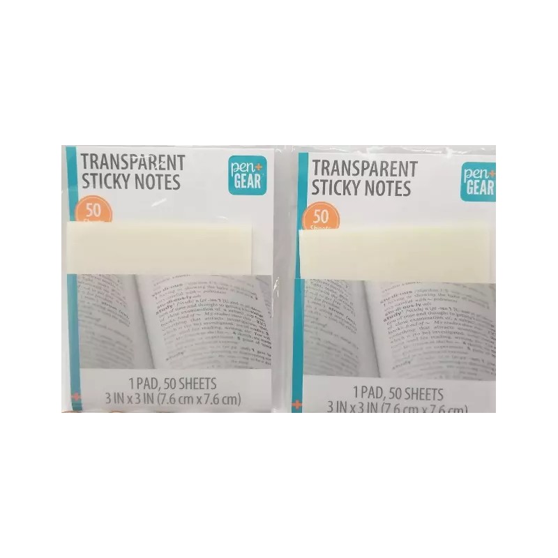 pen gear 150 sheets (3 packs / 50) transparent sticky notes 3" x 3" repositionable