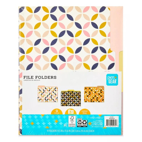 Pen + Gear 3-Tab File Folders 9.5" x 11.6" 9 Folders Total