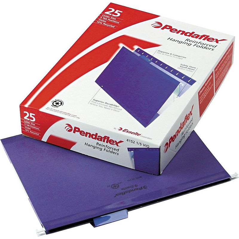 Pendaflex 415215VIO Hanging Folder, 1/5 Tab Cut, Letter, 25/BX, Violet