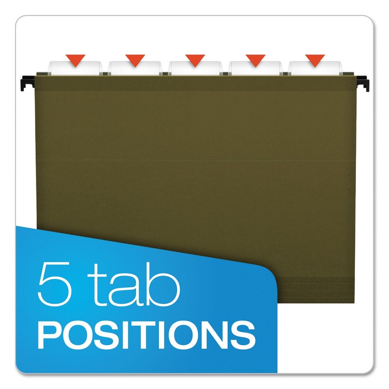 Look no further for one of the smartest, most innovative hanging folders around. Features SureHookTM technology with revolutionary built-in tension springs. Rods bend less while folders stay on rails and slide with ease. Rods and hooks are stronger and sturdier. Folders work with existing systems. Patented polylaminate reinforced tops and bottoms provide strength. Lighter interior colors help prevent misfiles. Includes tabs and inserts.
