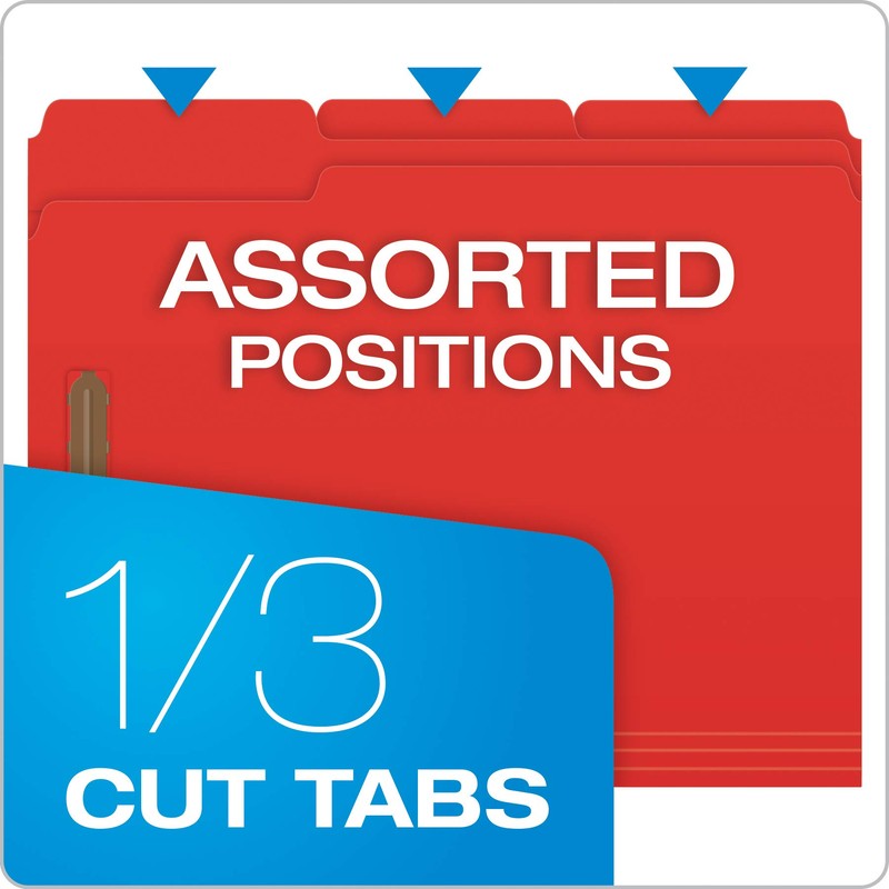 Pendaflex Fastener Folders have sturdy 2" fasteners to keep important papers in place. These everyday-weight organizers help you subdivide your most intricate office files. Two flexible metal prongs keep papers secured and in sequential order. Reinforced 1/3-cut tabs can withstand your busiest file drawer. Assorted position tabs display left to right for uninterrupted viewing of file names.