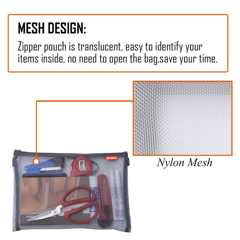 • Clear Mesh Pocket: These zippered mesh pockets are see-through so it's convenient for you to see what's inside. That saves you time! Best choice for students, teachers, office workers, etc. to keep their textbooks, worksheets, documents, resumes, pens or pencils, rulers, etc.