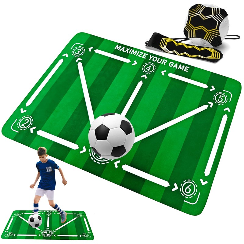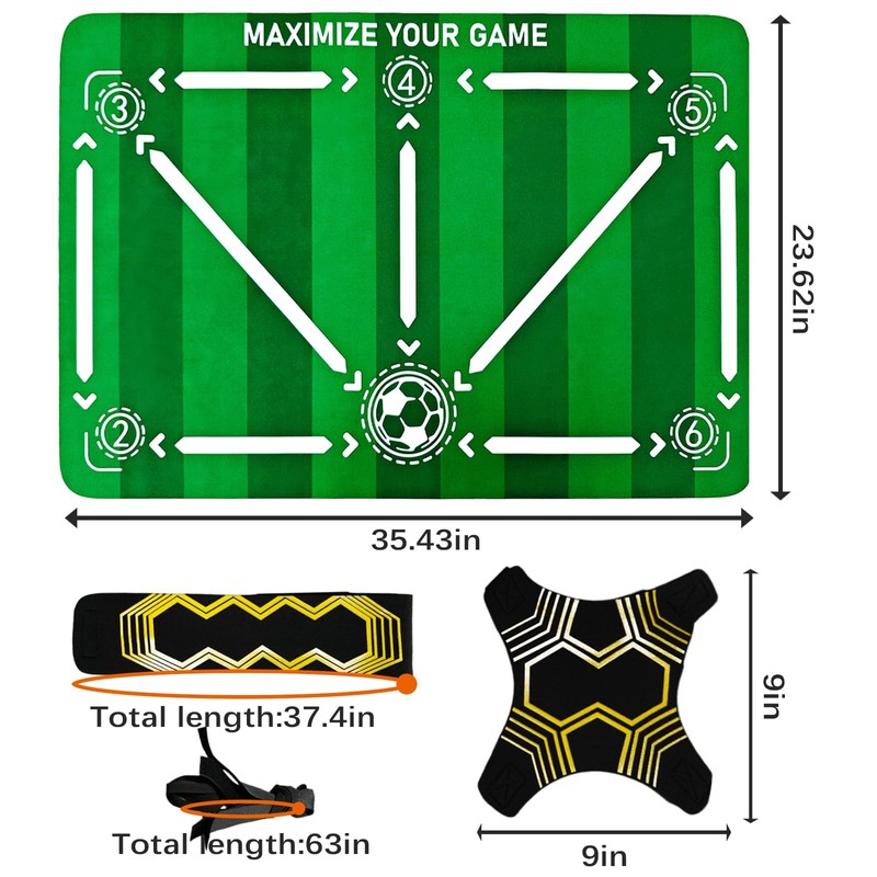 - 【Value Football Training Mat Set】The Soccer Training Mat measures 35.43 x 23.62 inches, providing ample space for training. The thicker version of the football footstep training mat is more comfortable. Additionally, adjustable belts and elastic ropes are included to significantly improve ball control techniques. The elastic rope can stretch up to 18 inches, making it both fun and practical for hands-free sole training.