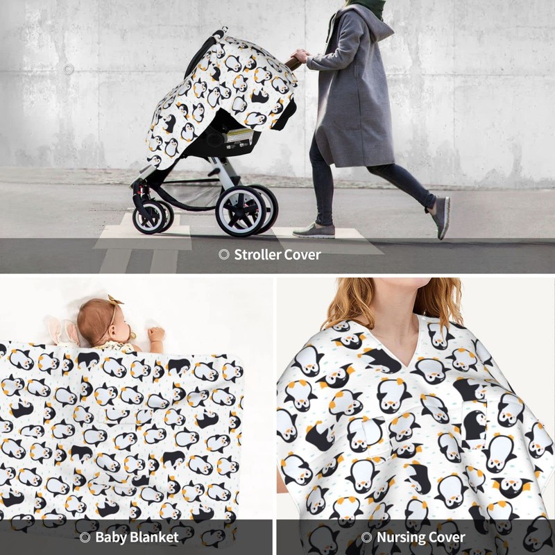Penguin Car Seat Cover for Baby in Winter Summer, Nursing Cover for Mom Penguin Stuff for Baby Boys Girls
