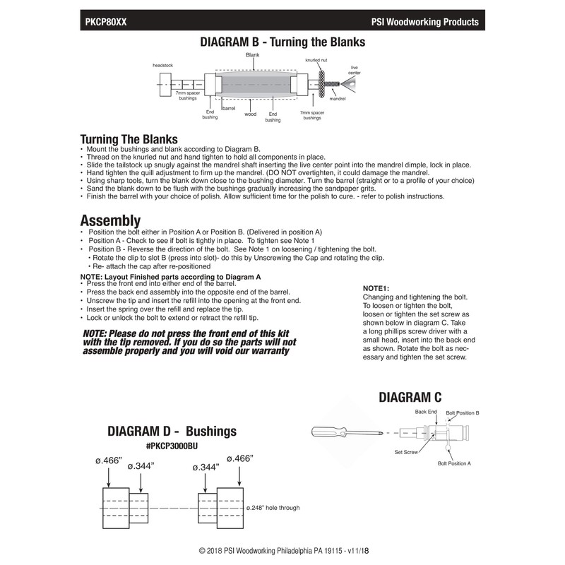 - Also includes the bushing set (PKCP3000BU) needed to make the pens