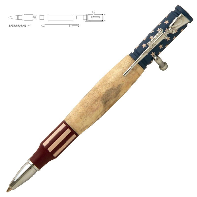 Penn State Industries PKCP80CSS Ceramic Bolt Action Flag Ballpoint Pen Kit Starter Package Woodturning Project