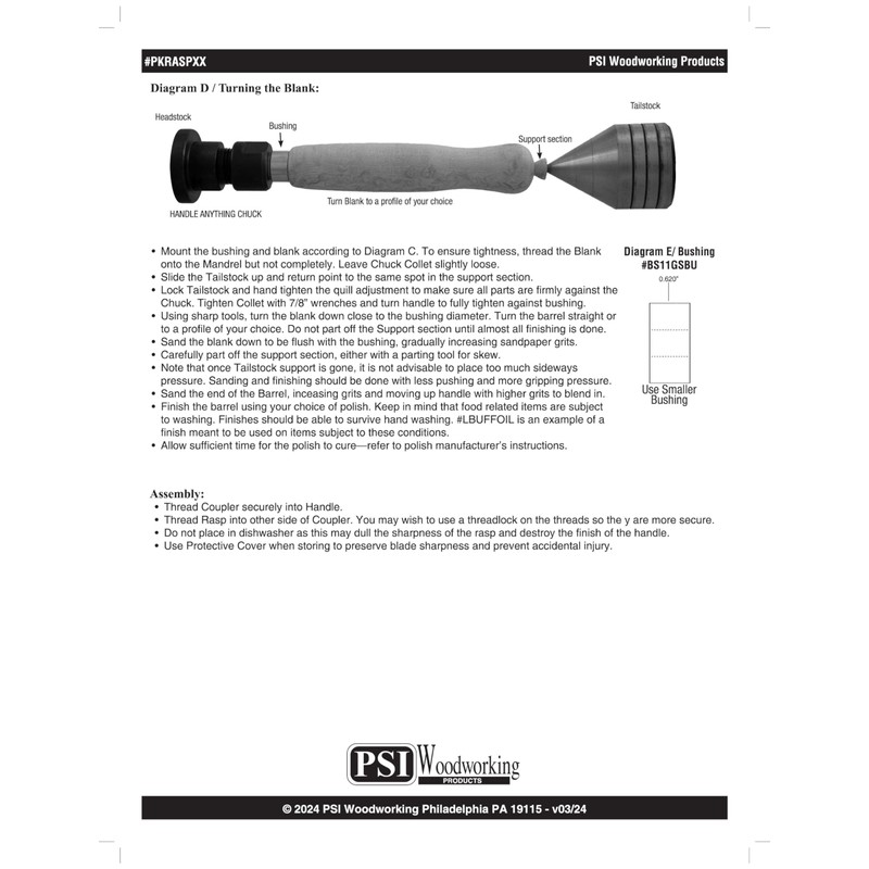 • This is a woodturning project kit; Hardware parts only; A LATHE IS NEEDED TO 'TURN' HANDLE AND ASSEMBLE INTO FINISHED RASP GRATER; Blanks, bushing set, drill bit and all other turning tools and supplies are not included