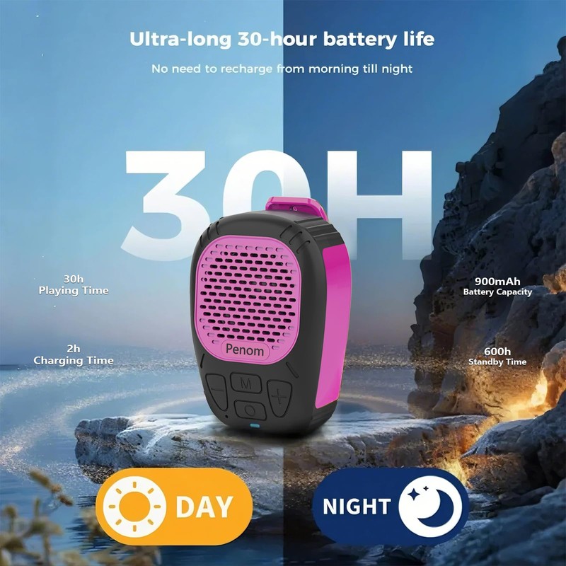 - Long battery life; with 30 hours of long-lasting playback, the Bluetooth waterproof speaker allows you to enjoy music for a long time