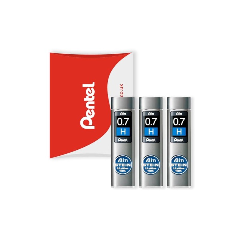 Pentel Ain Stein Mechanical Leads - Automatic / Mechanical Pencils - In Pentel Cushion Packaging - 0.7mm H Class - 3 Pack (120 Leads)