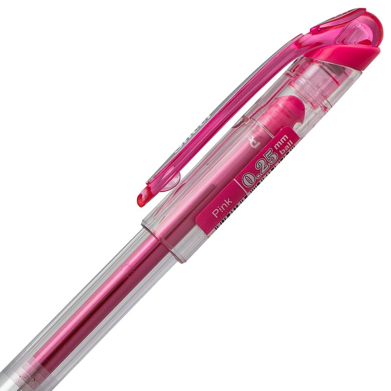 Pentel Arts Slicci Liquid Gel Rollerball Pens, Art, Sketching, Journaling, 0.25mm Extra Fine Point, Pink Ink, BG202P1, Box of 12