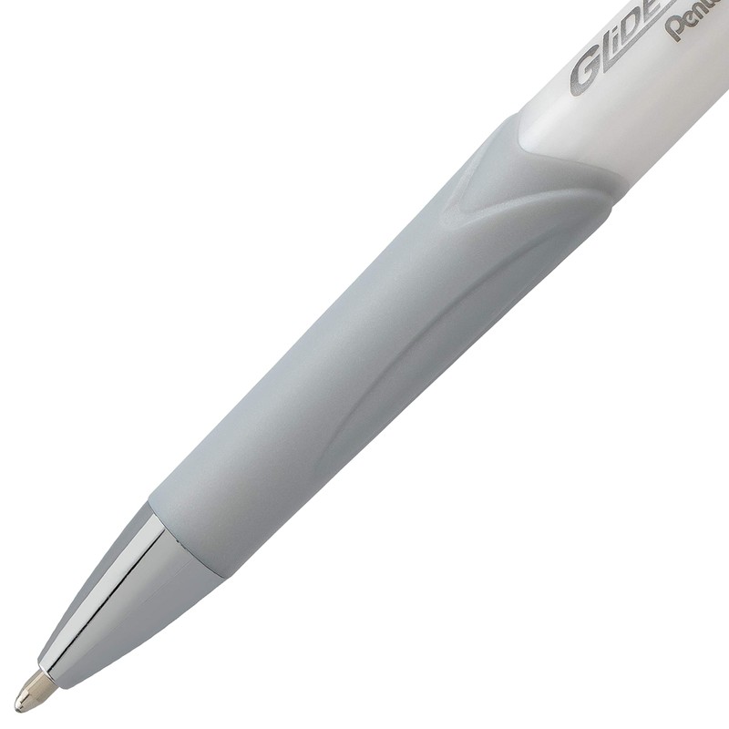 Pentel Glidewrite Signature Ballpoint Pen Pearl White Barrel, (1.0mm) Medium Line, Blue Ink, 12 Pens (BX930W-C)