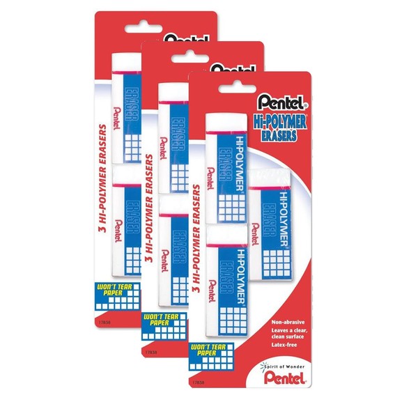 Pentel Hi-Polymer Block Eraser, Large, Pack of 9