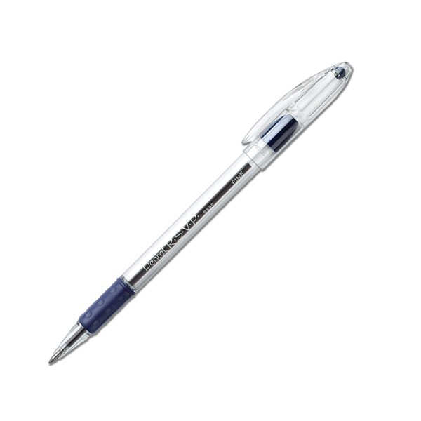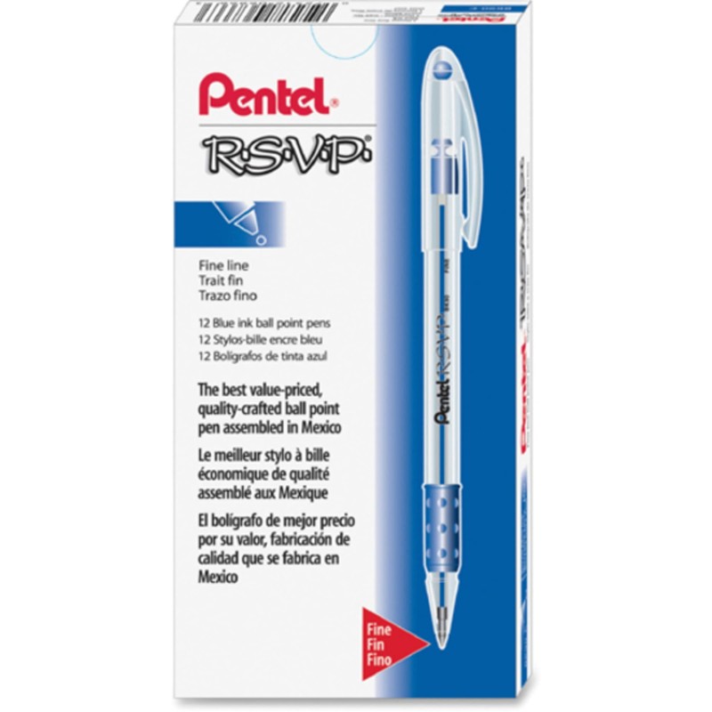 Pentel® R.S.V.P.® Ballpoint Pens, Fine Point, 0.7 mm, Clear Barrel, Blue Ink, Pack of12