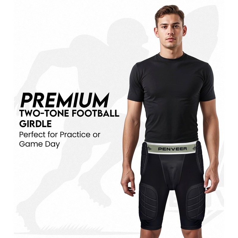 - DOMINATE WITH CONFIDENCE: Our football girdle youth boys features an integrated 5-pad system with plastic-reinforced thigh pads for enhanced protection, extended hip pads reaching the top of the waistband, and a spine pad for complete tailbone coverage.