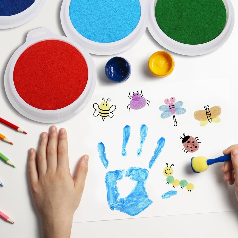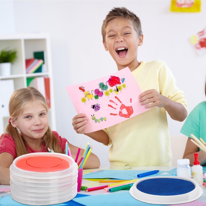 • Smart Package: You will get 8 pieces ink pads in 8 colors, including red, orange, yellow, pink, green, sky blue, blue, purple. Each measures 7.1"D x 0.6"H, which is suitable for most children's hands and rubber stamps.