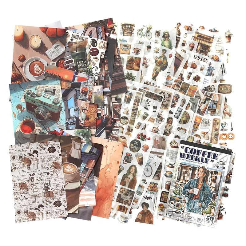 - DECORACTIVE MATERIAL PAPERS: Features charming scrapbook paper designs inspired by coffee culture/museum artifacts for unique artistic projects. This aesthetic pre-cut people washi scrapbook stickers is great for both beginner and experienced scrapbookers!