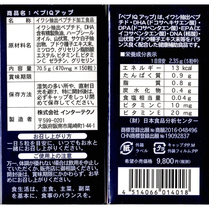 Special Ingredients: Sardine extract peptide/DHA (docosahexaenoic acid)
