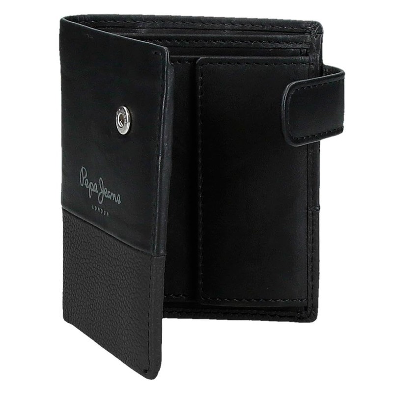 Pepe Jeans Joumma Bags Double Vertical Purse with Click Closure, Black, 8.5 x 10.5 x 1 cm, Leather by Joumma Bags, Talla única Vertical Purse with Click Closure, black, Vertical wallet with click