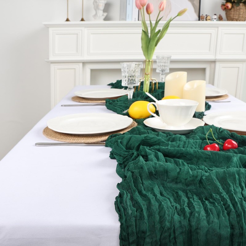 - 【Care Instructions】For The Vintage Emerald Green Cheese Cloth Table Runner, It Is Recommended That You Put Them In A Laundry Bag For Machine Washing Or Hand Wash With Cold Water. To Preserve The Wrinkled Texture Of The Gauze Table Runners, Please Do Not Iron Or Bleach Table Runners. Also, Avoid Direct Exposure To The Sun To Prevent Fading, So That They Can Be Used For A Long Time.