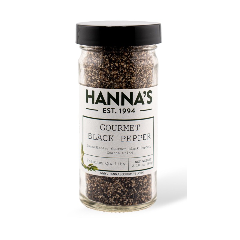 Hanna's Pepper Black Gourmet Style, Premium Quality Peppercorns, 4 fl oz Glas...