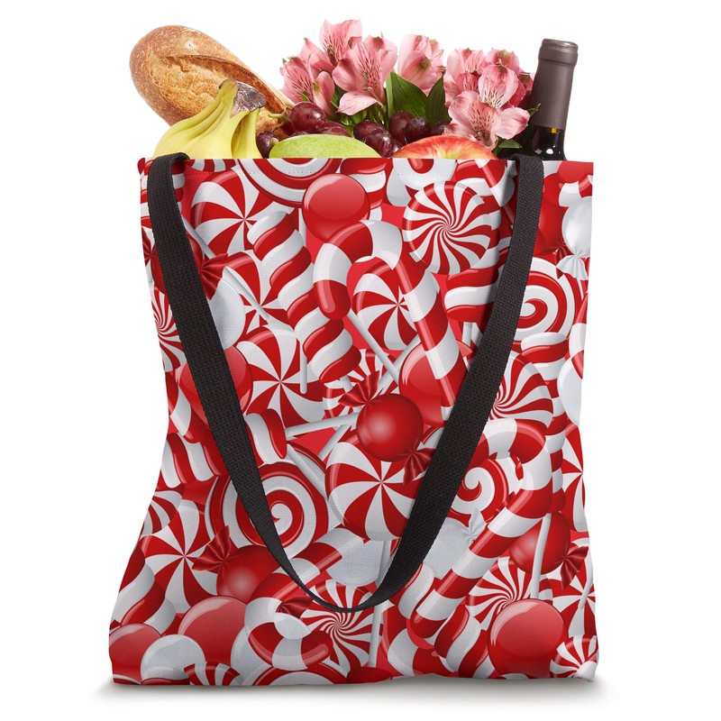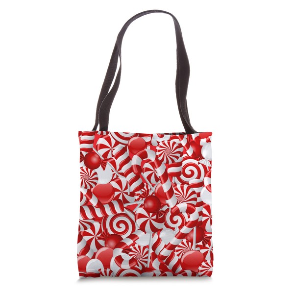 Peppermint Candy Cane Swirl Red White Christmas Candy Print Tote Bag