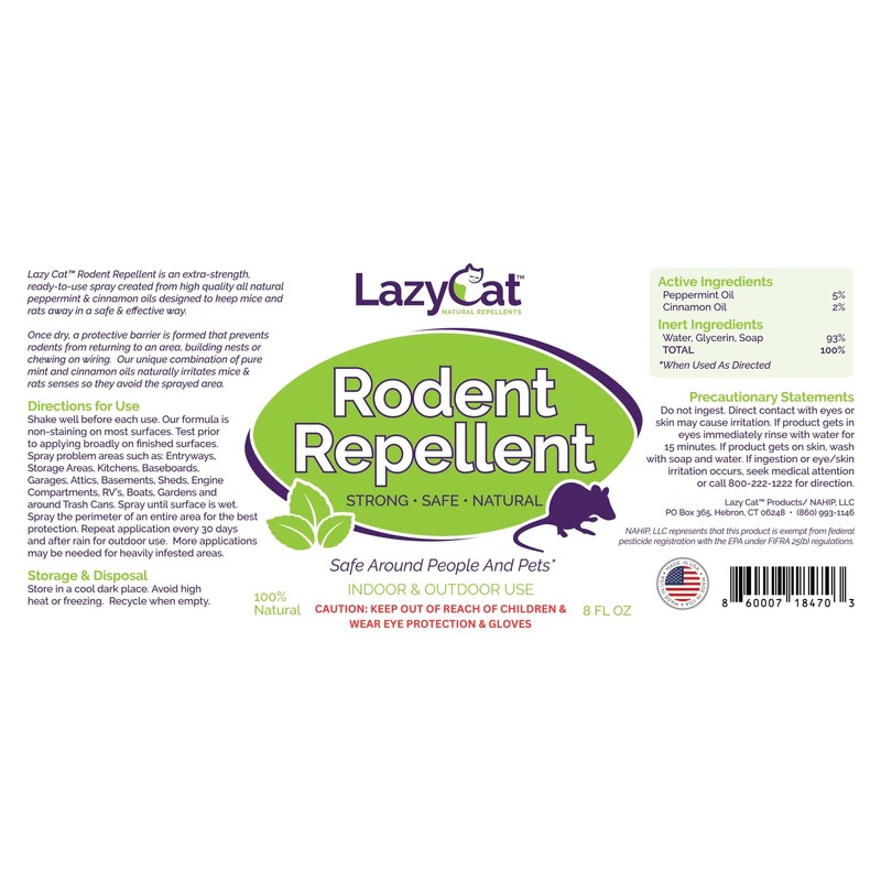 - Peppermint oil spray for rodents plus Cinnamon DOUBLE Strength rodent repellent All natural mouse repellent, rat repellent and deterrent. Easy spray application will repel rodents, mice and rats; Trap Alternative for an effective humane way to control mice and rats. Indoor & Outdoor Clear NON STAINING Formula Great for Car Engines RVs and Campers MADE in USA. Meets strict California safety requirements.