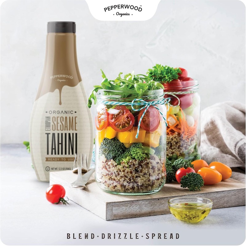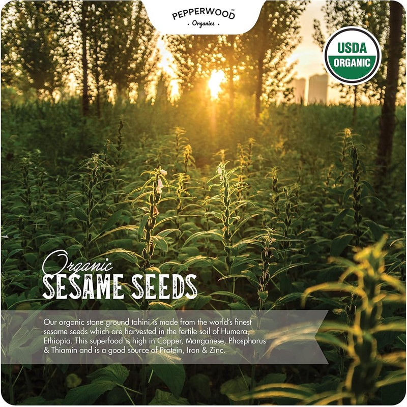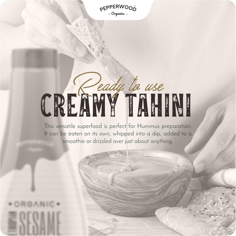 Pepperwood Organics Organic Ethiopian Sesame Tahini 350g - Squeezable Creamy & Ready Tahini Paste - Hulled, Unsalted, Non-GMO, Gluten-Free, Peanut-Free, by Pepperwood Organics